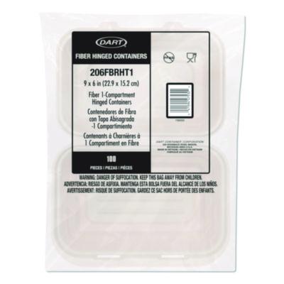 Dart® Compostable Fiber Hinged Trays, ProPlanet Seal, 6.41 x 9.22 x 3, Natural, 200/Carton SKU: DCC206FBRHT1 |