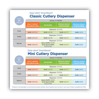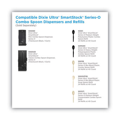 Dixie® SmartStock® Dining Utensil Dispenser, Holds 120 Spoons, 10 x 8.75 x 24.75, Translucent Black SKU: DXESSSD120 |