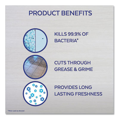 Help protect your workplace against viruses and bacteria with the versatile, concentrated Lysol® Pourable Multi-Surface Cleaner. When used as directed, this broad-spectrum disinfectant kills germs, including cold and flu viruses, RSV, E. coli, Salmonella, and the virus that causes COVID-19, when used at full strength or diluted on hard, non-porous surfaces. Give cleaning crews the ability to cut through tough grease, grime, soap scum, and daily messes with a multi-surface formula that works in spray bottles and mop buckets and can be used without dilution. Clean high-touch surfaces in breakrooms, classrooms, guest and resident rooms, manufacturing areas, and workspaces with a disinfectant, restroom cleaner, and floor cleaner in one. Deliver a pleasant scent in the area where it is used. Application: Disinfectant/Cleaner; Applicable Material: Hard, Non-Porous Surfaces; Chemical Compound: n-Alkyl (C14 50%, C12 40%, C16 10%) Dimethyl Benzyl Ammonium Chloride; Dirt Types: Bacteria; Dust; Germs; Grease; Grime; Oil-Based Soil; Organic Matter; Smoke Film; Soap Scum; Water-Based Soil.