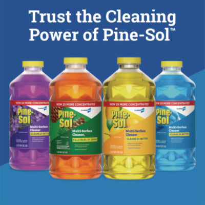 With Pine-Sol® Multi-Surface Cleaner from CloroxPro, you only need one cleaner to fight tough dirt, grease and grime. This 2X concentrated formula delivers more cleaning power per drop and cleans 5X better than the previous Pine-Sol® scented formula. Easier to handle and easier to store, the space saving bottle size gives you more cleaning solution in a smaller bottle made of 30% less plastic. This multipurpose cleaner cleans right the first time, removing stains and deodorizing soft surfaces while leaving a clean scent. This powerful degreaser cuts through grime and soap scum fast and is safe for use on wood, tile, stone, porcelain, and glass and more when used as directed on hard nonporous surfaces. Do not use on marble, aluminum, copper or wood that is unfinished, unsealed, unpainted, waxed, oiled or worn. Application: Multipurpose Cleaner; Applicable Material: Baked Enamel; Bamboo; Cement; Chrome; Concrete; [Engineered] Wood; Glazed Ceramic Tiles; Glazed Porcelain; [Hard] Plastic; Hard Vinyl; Laminate; Linoleum; Metal, Sealed Fiberglass; Sealed Granite; Stainless Steel; Vinyl; Chemical Compound: Water; PEG/PPG Propylheptyl Ether; Sodium Secondary C13-18 Alkyl Sulfonate; Fragrance; Citric Acid; Xanthan Gum; Colorant; Contains Fragrance Allergen(s); Dirt Types: Dirt; Grease; Grime.